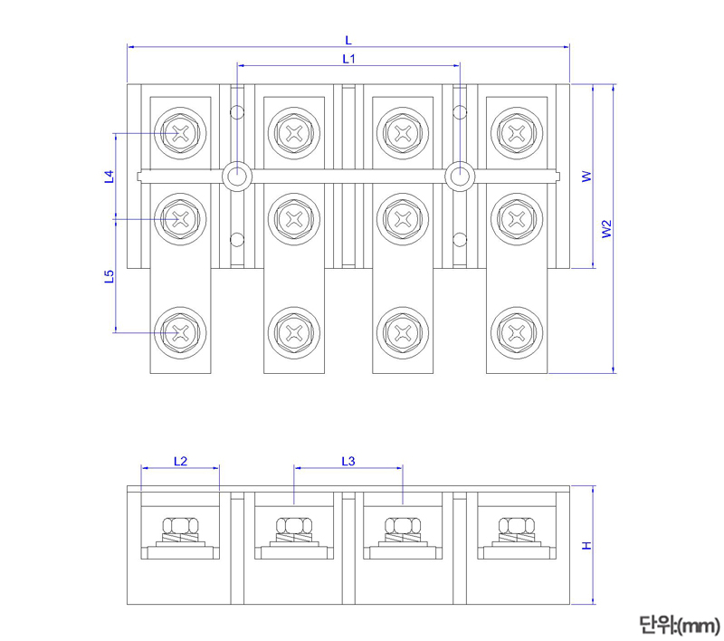 | TYPE | L | L1 | L2 | L3 | L4 | L5 | W | W2 | H | Terminal Screw